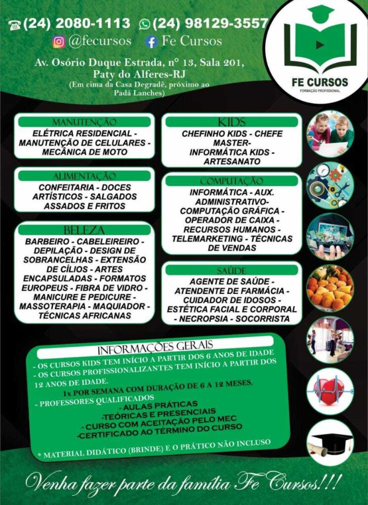 Curso válido para Paty do Alferes e Miguel Pereira.